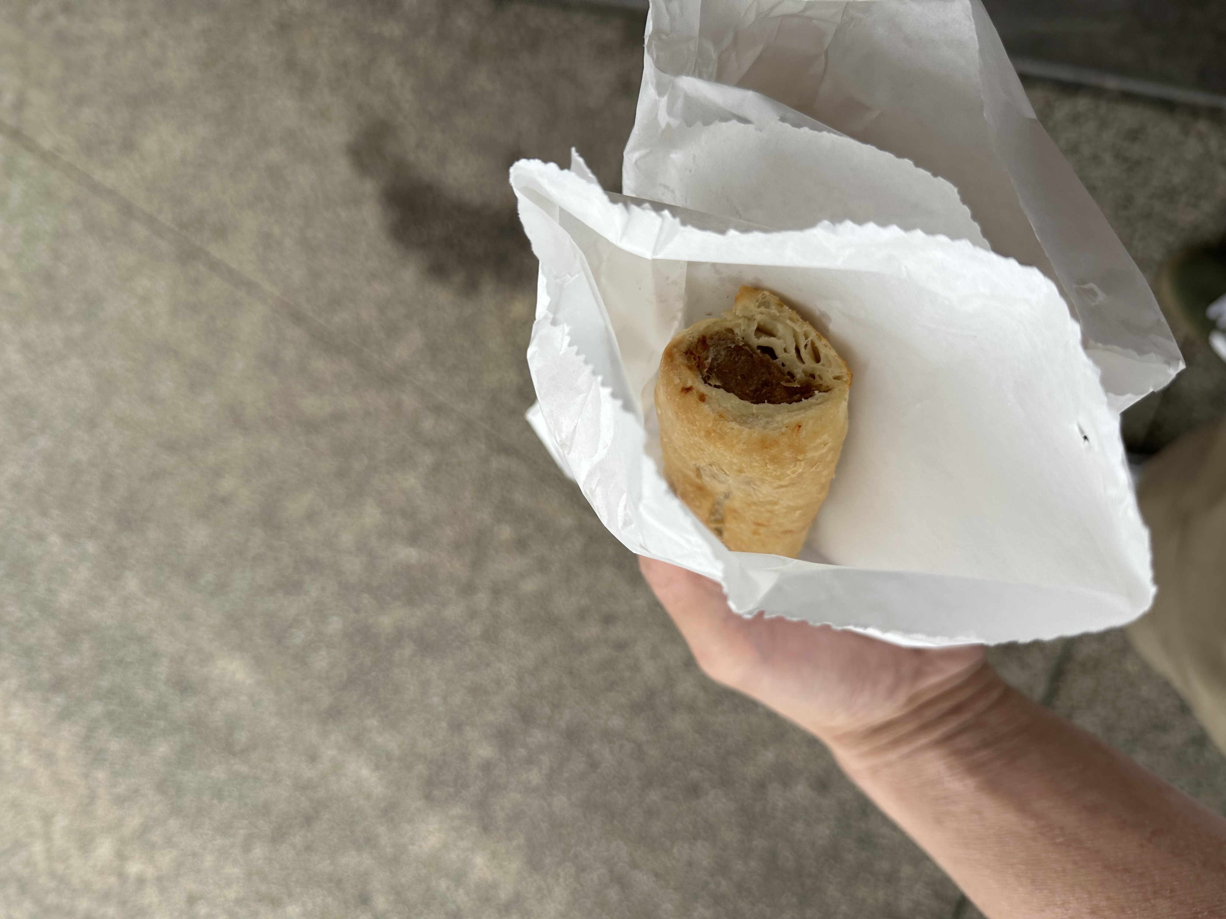 Originally I only intend to order a steak pie, but thanks to my fantastic small talk technique and charming outlook(?), the lady at the counter offered a free sausage roll to go with the pie, which I promptly thanked her for and accepted the offer.